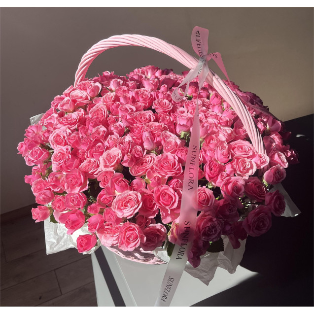 101 гілочка кущової троянди Пінк бум 40 см в кошику
