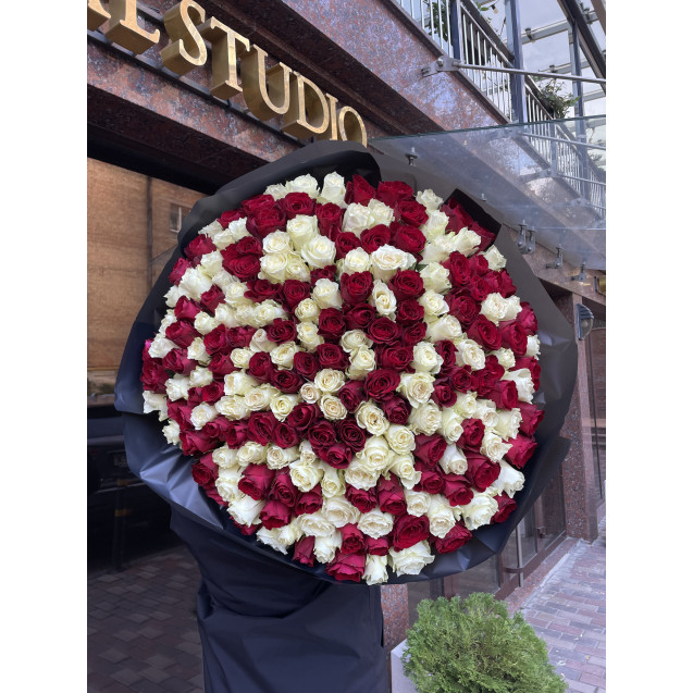 201 троянда мікс білих і червоних 70 см в упакуванні